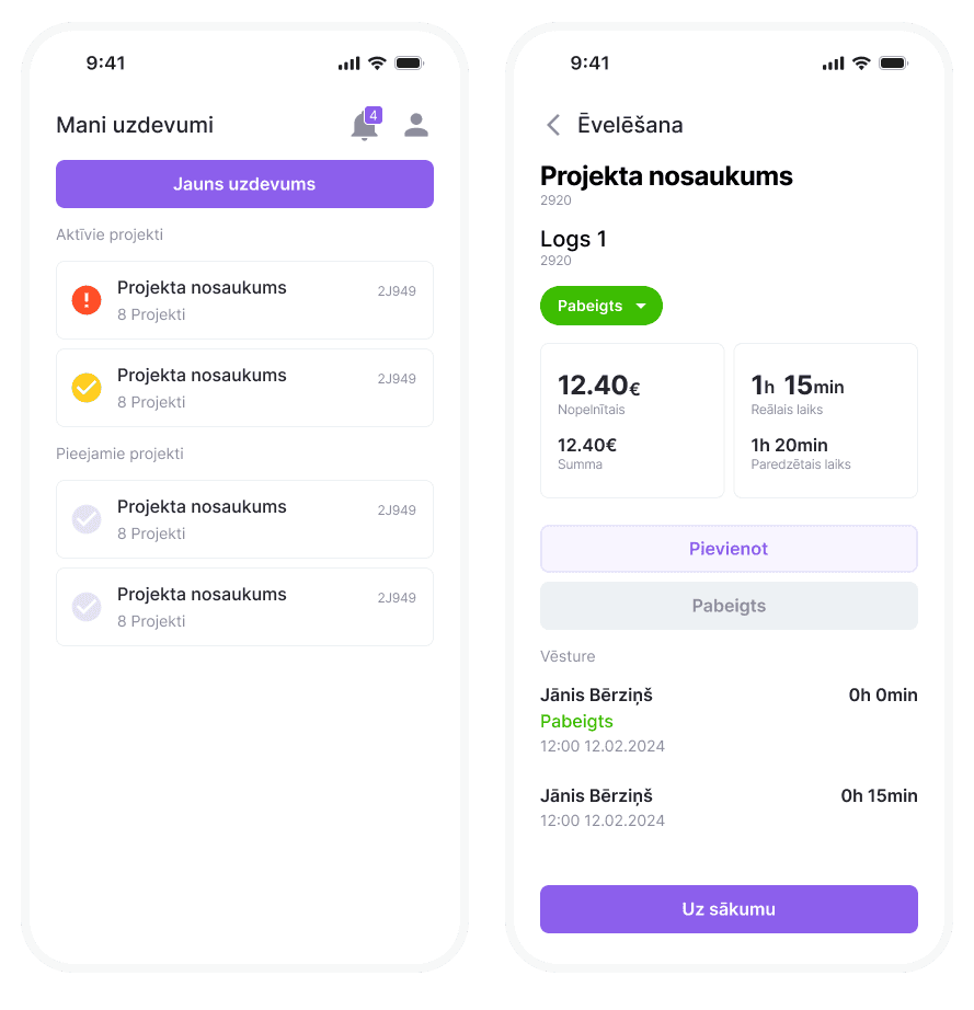 Reģistrē paveiktos uzdevumus uzreiz, bez papīriem, bez kavējumiem, tikai reāllaika atskaites.